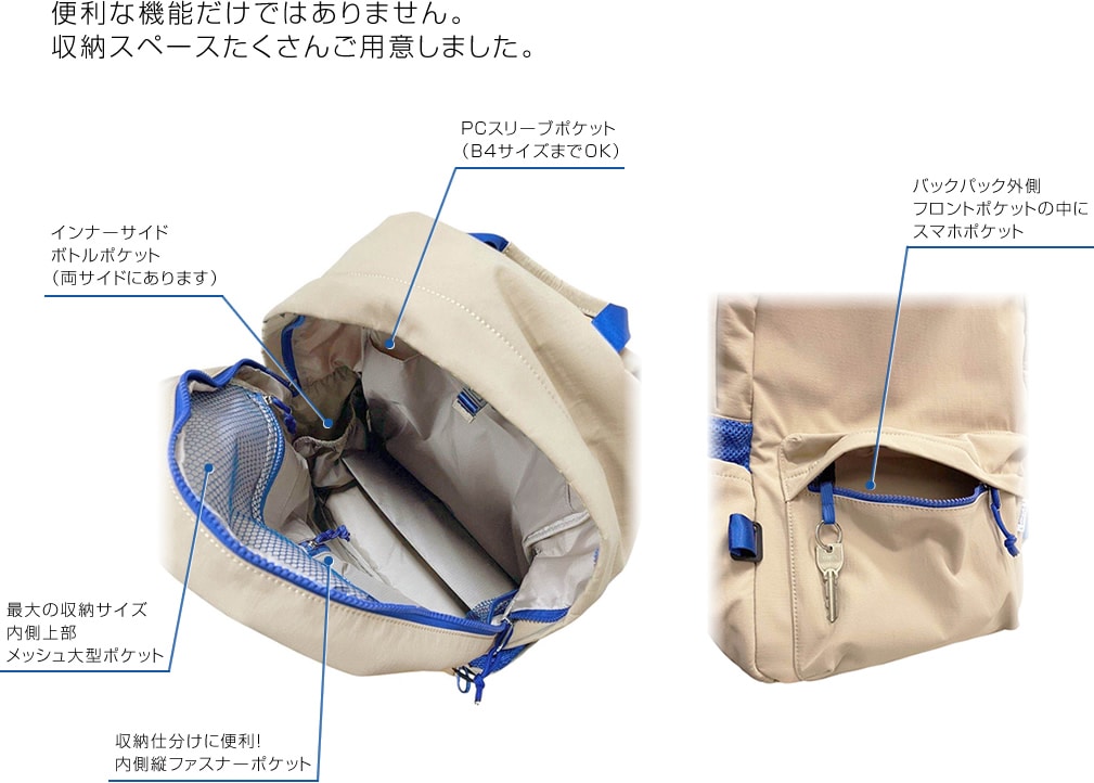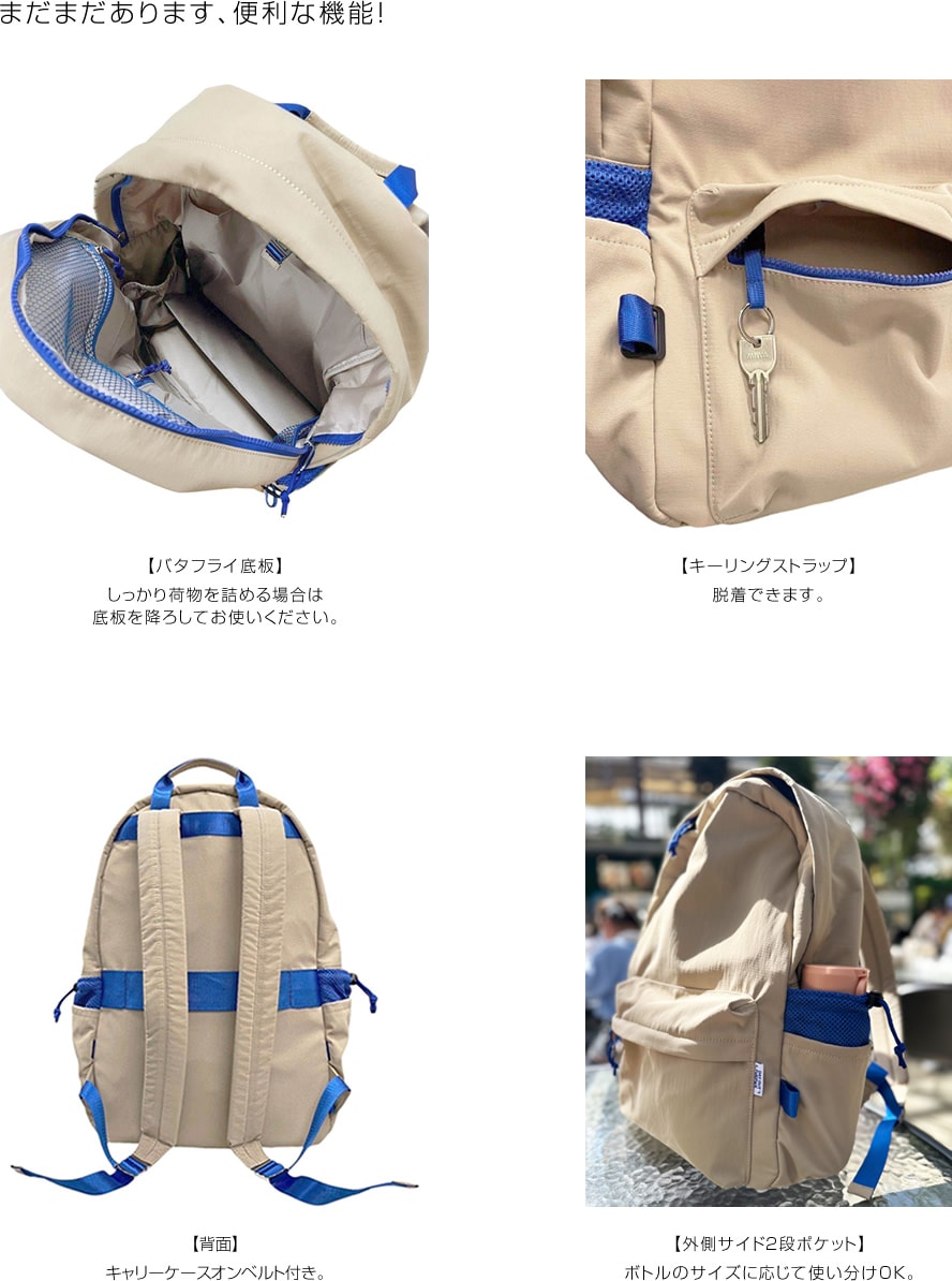 シンプルかわいいバックパックは、日常使いやピクニック、トラベルや低山トレッキングまで大活躍!